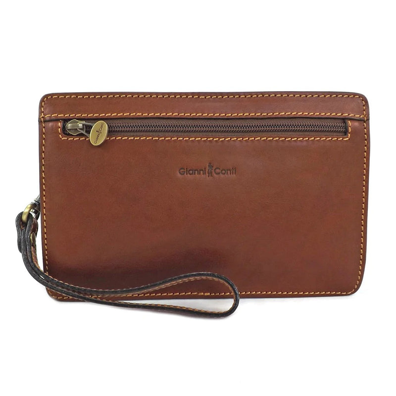 La Pochette Leather Particular è realizzata in pelle. Ha una chiusura a zip. L'interno è composto da un doppio scomparto abbastanza capiente con una tasca centrale con chiusura a zip per dare maggiore spazio, comodità e organizzazione. L'esterno è caratterizzato da una doppia tasca con chiusura a zip fronte-retro e la scritta del logo. E' dotato di un manico a polsiera removibile.