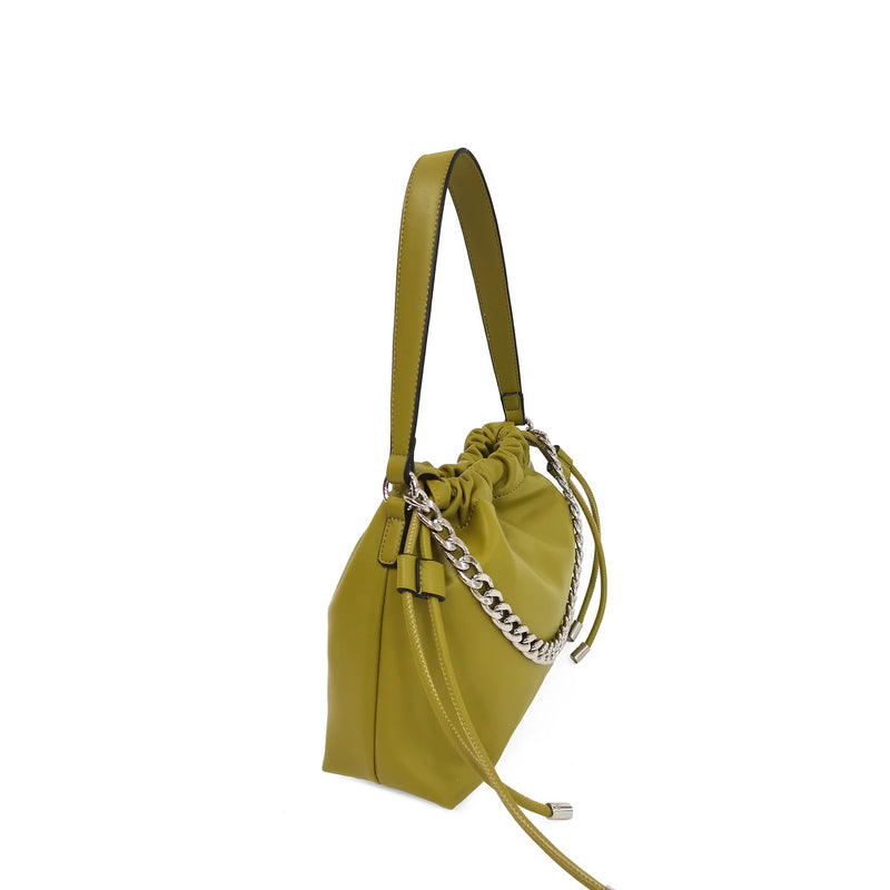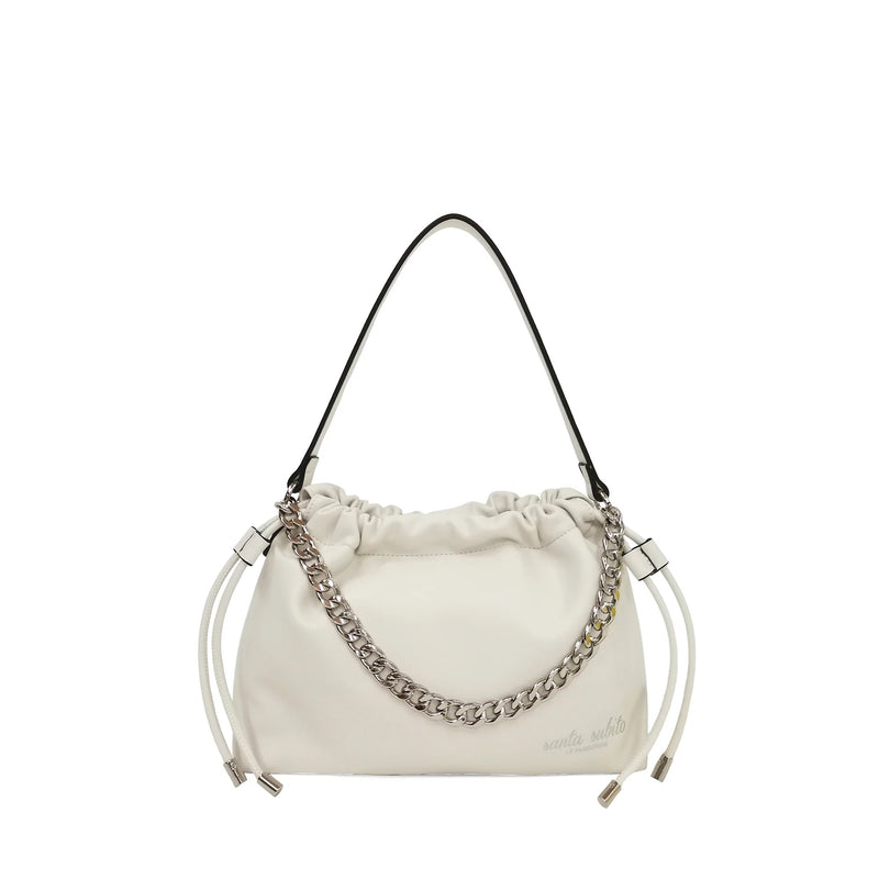 • Un manico in pelle e uno in catena metallica removibile decorativa o funzionale come tracolla corta