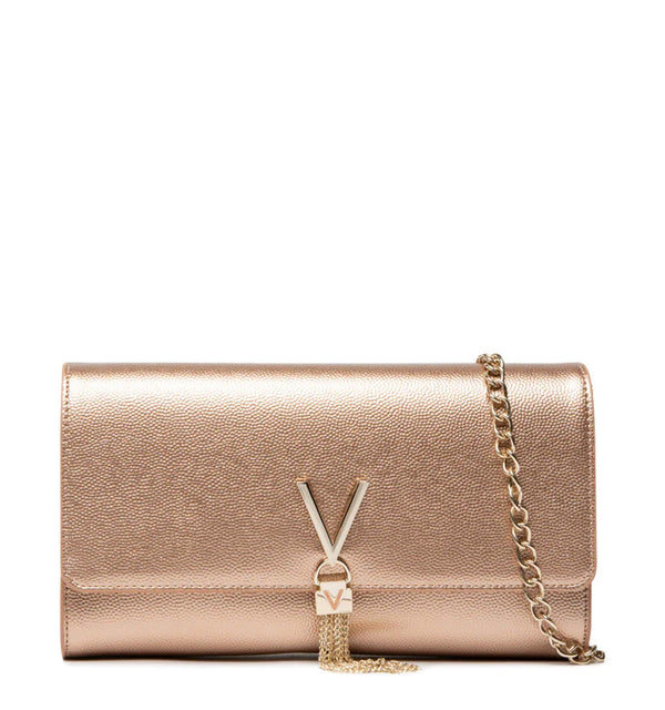 La borsa a tracolla della linea Divina di Valentino Bags è in pelle sintetica effetto saffiano.